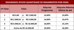 De acordo com o texto do Executivo, do total de 184.284 servidores ativos do RPPS, 83% recebem até R$ 6 mil. Esse grupo vai contribuir com alíquotas efetivas (descontos reais nos vencimentos) que variam de 13% a 13,67%, ou seja, índices inferiores aos 14% exigidos pelo governo federal. Já para os grupos formados por servidores com salários maiores as alíquotas efetivas variam de 15,13% a 18,38%.