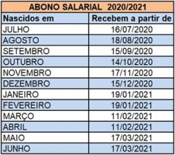 Para os demais trabalhadores, o pagamento será escalonado conforme o mês de nascimento. Confira o calendário: