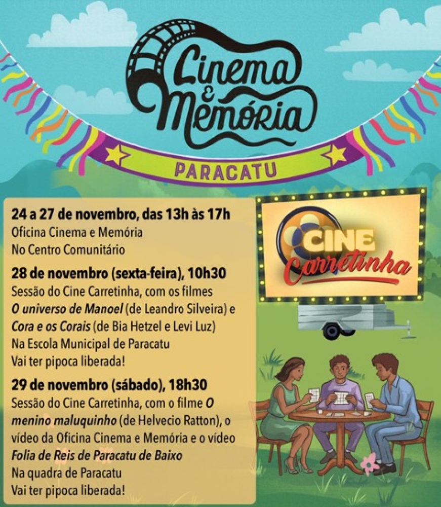O projeto Cinema e Memória, iniciativa que transforma espaços públicos em salas de cinema ao ar livre, continua sua programação em novembro de 2025 com novas sessões em Novo Bento Rodrigues e Paracatu. As exibições são gratuitas e contam com o Cine Carretinha, que leva filmes nacionais a diferentes territórios, incentivando moradores a ocupar e ressignificar seus espaços de convivência.
