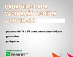 Está aberto o cadastramento para vacinação contra a Covid-19 para pessoas de 18 a 59 anos com comorbidade, gestantes, puérperas (que no momento da vacinação estejam até no 45º dia pós-parto) e pessoas com deficiência permanente que são cadastradas no Benefício de Prestação Continuada (BPC).