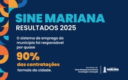 Segundo informações do Cadastro Geral de Empregados e Desempregados (CAGED), Mariana registrou 12.380 contratações formais no período analisado. Desse total, 10.888 admissões foram intermediadas pelo SINE, o que corresponde a 87,94% das contratações realizadas no município.